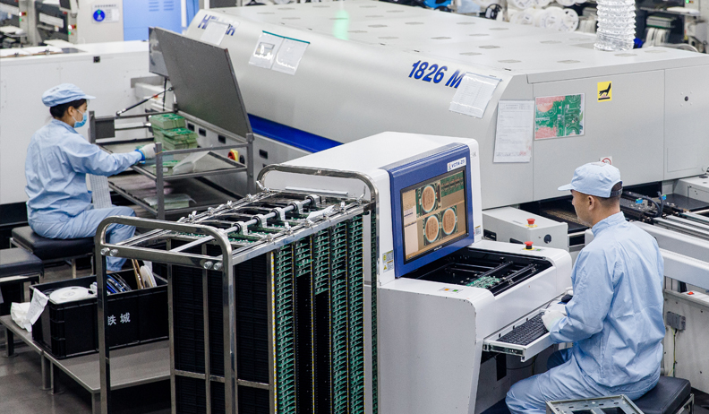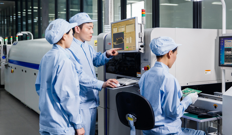 SMT車間已建成4條YAMAHA全自動(dòng)貼片線。測(cè)試過(guò)程采用自動(dòng)光學(xué)檢測(cè)設(shè)備、錫膏檢測(cè)儀、Chroma可編程檢測(cè)系統(tǒng),ICT在線測(cè)試儀,全自動(dòng)流水式封閉老化室等11道測(cè)試門(mén)。裝配車間采用自動(dòng)焊接機(jī)器人、自動(dòng)鎖螺絲機(jī)器人、鐳射激光設(shè)備、MES物聯(lián)系統(tǒng)組成的全自動(dòng)化流水線。